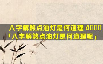 八字解煞点 🐝 油 🪴 灯的原 🌺 理