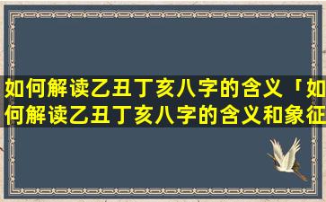 乙丑丁 🌳 亥八字 🐅 的含 🐎 义