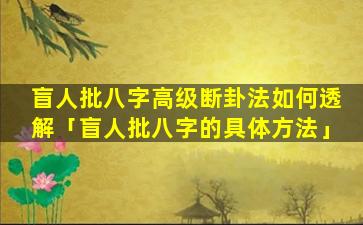 透解技巧盲人批八字高级 🐝 断卦法透解主要 🐳 使用了以下技巧:
