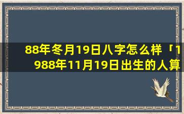 总体来看:88年冬月19日八字身弱,五,行失衡格局不高。命,主性格柔弱事业、财、运、婚。姻,健,康。方面运势波折不定需要注意培养意志 ☘ 力加强身体锻炼并谨慎选择伴侣