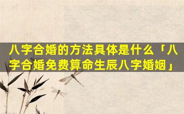 八字合婚,又,称四柱合婚是中国古代用 🌳 来预测婚姻吉凶的一种方法。其,原,理是。根据两个人的生辰八字推算出双方的五行生克关系以此判断婚配的吉凶
