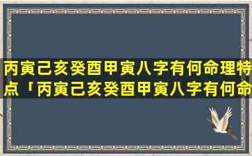 丙寅己亥癸酉甲 🦄 寅 八字 🪴 命理特点: