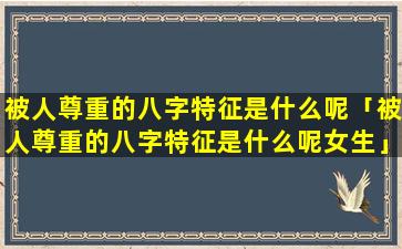 被人 🐶 尊重 🐠 的八 🌷 字特征: