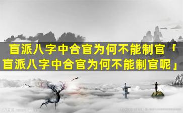 盲派八字中"合"官不能 🦅 制官的说法是指: