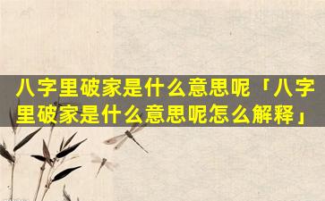 在八字命理中,“破家 🌲 ”是,一,个凶煞表示会破耗家财导致家庭经济状况不佳。