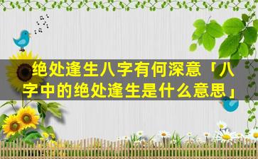 绝处逢 🕷 生 🌲 的八字 🐡 深意