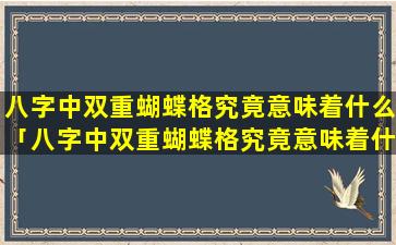 在 🐈 八字命理中,“双重蝴蝶格”是,一种极为罕见的格局 🦉 具有以下特点: