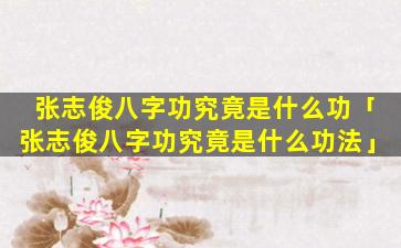 :张志俊八字功是一种 🍁 由武术家张 🐎 志俊创造的 🐘 中国传统武术功法。其。特点是通过交叉双臂和移动手掌的动作来促进气血流通