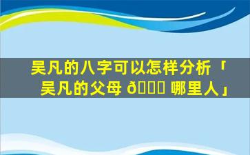 文中没 🐟 有提到吴凡父 🌹 母的籍贯信息。
