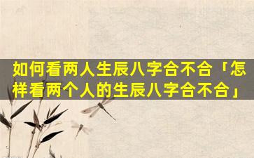 如何 🐺 看两个人生辰八字合不合 🌷