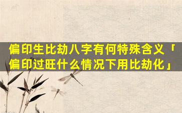 偏印生 🐱 比 🌼 劫八字的特殊 💐 含义