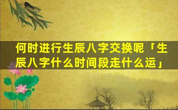 根据传统命理 🍁 学,“生辰八字交换 🐞 ”并不被认可的命 🐒 理概念。因,此“不”存。在何时进行生辰八字交换的说法