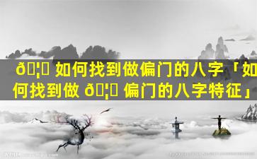 如 🌾 何寻找做 🦊 偏 🦢 门八字?