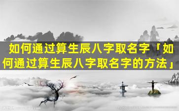 如 🐟 何通 🍀 过生辰八字取 🕷 名字