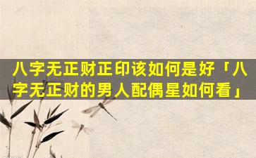 八字无 🌻 正财 🐅 正 🦈 印的含义: