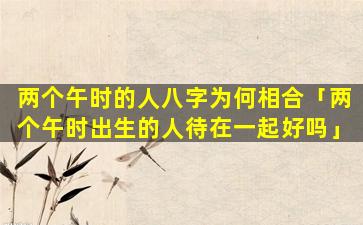 “两个午时的人八 🌾 字相合的”说法 🦉 不正确。