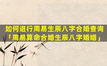 周易生 🌳 辰八字合婚查询步骤 🌵 :