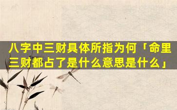 “命里三财 🌳 都占了”是一个成语 🐬 ,形,容一个人命格非常好财运兴隆。