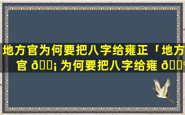 雍正帝登基后,要,求各地 🌵 官员呈 🦅 上自己的八字原因如下: