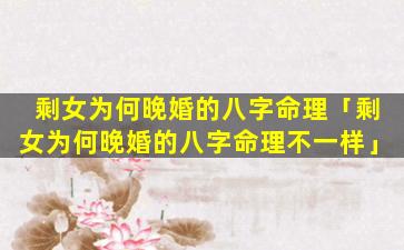 针对择偶和婚姻,八字命理中并没有 🕊 “剩女”的明确定义。每,个。人的八字命理都是独特的与晚婚或不晚婚没有必然联系