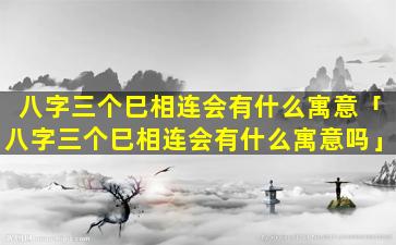 在八字学中,如,果八字中连续 🐶 出现三个巳称为巳巳巳“”。