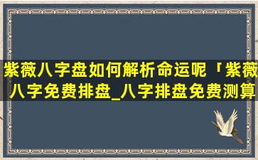 综合解盘通过结合紫薇斗数和八字排 🌼 盘解盘,可以更深入地 🐟 了解一个人的命运 🦍 和运势。
