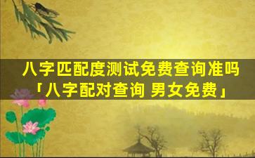 八字匹 🐳 配度测试免 🦉 费查询的准 🐕 确性: