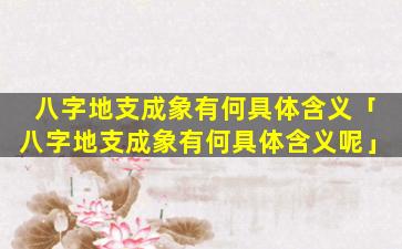 八字中地支的组合形成各 🐛 种不同的象,这些象对命主的 🐦 人生运势具有重要的影响具 🦁 。体含义如下: