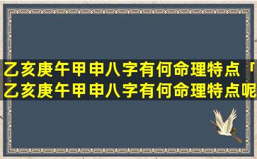 乙亥庚 🕷 午甲申八字 🕸 的命理 🐡 特点: