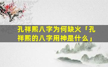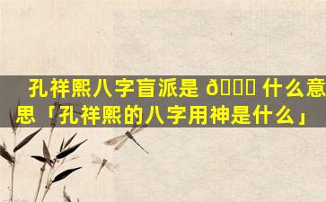 孔祥 🍀 熙的 🌳 八字 🐅 为: