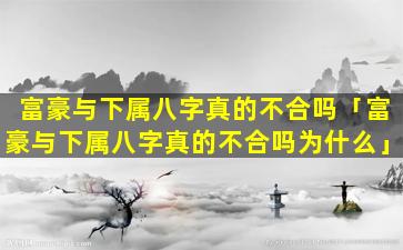 富豪与下 🦁 属 🌷 八 🌾 字不合的说法