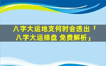 八字大 🌷 运地支透出的 🍁 时机主要有以下几种: