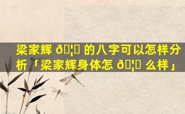 整体面相:梁家辉的面相总体给 🍀 人一种沉稳内敛,智,慧机敏有贵人之相的感觉。他的,额,头,宽,阔,眉,毛,浓,黑。眼睛深邃鼻子挺拔嘴巴能言善辩下巴方正地阁圆润预示着他在事业上能取得成功晚年运势佳