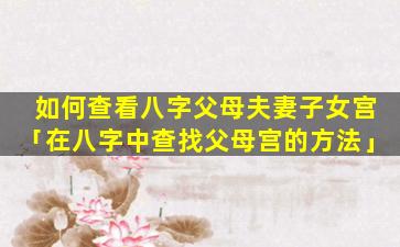八字父母 🐎 夫妻子女宫 🌻 查看方法