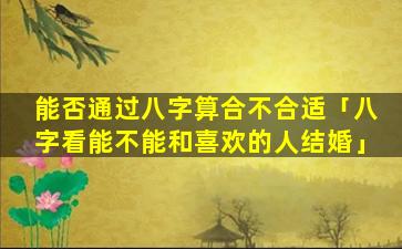 八 🦢 字中并没有 🐴 直接的依据可以判断是否能够与喜欢的人结婚。