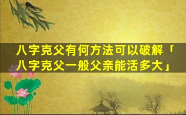 “八字克父”是一种民间迷信的说法,没有任何科学依据。因 🐈 ,此 🐈 没有 🐕 任何。方法可以破解这一说法