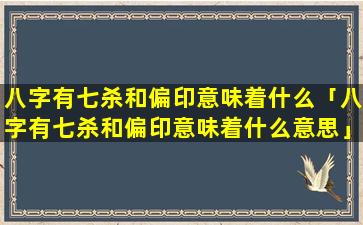 八字有七 💐 杀和偏 🪴 印的 🐝 含义