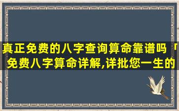 “真正免费的 🐟 八字 🦊 查询算命的”可 🦄 靠性问题