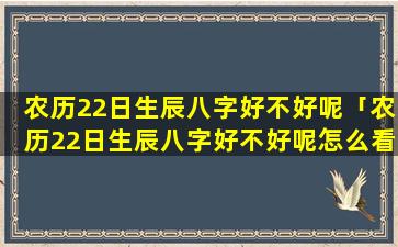 农历二十二日出生的八字好坏无法仅凭此信息判 🌷 断,需要完整的出生年月 🕷 日时信息进行推算。