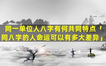 同八字,出生在富贵家庭和 🐟 贫困家庭。前,者资源充足成长环境优越;后,者。缺乏机 🦉 会命运坎坷