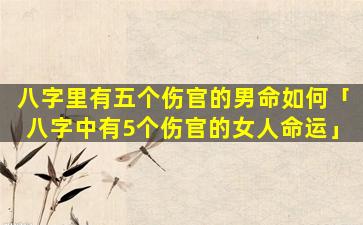 伤官是八 🕷 字十神中 🐯 的一种,代表叛逆、创、新聪明和才华一。个,男,命八字中有五个伤官称为伤官格其性格和命运特点如下: