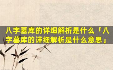 墓库的概念墓库是一种命 🐳 理术语,指,八字中藏干所藏的地支以及地支所藏之 🐎 天干八字中 🦟 。共有四个墓库: