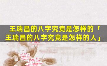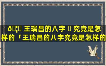 王瑞 🌻 昌的 💮 八 🌷 字: