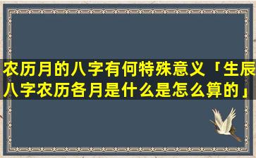 农历月的八字是一种中国传统占卜术,通过判断农历月中的四柱(年月、日、时、来)预测运势吉凶八字的。特殊意义 🐡 主要体 🐕 现在以下几个方面 🦢 :