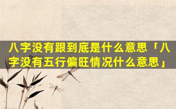 因此,当有人 🌾 说“八字没有跟到底”时,通,常,是指其 🌾 五行能量不平衡缺少某种五行能量从而导致其运势和性格方面的缺陷。
