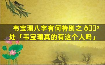 总体来看,韦,宝,珊的 🌷 八字财官两旺贵 🦄 人运好事业财运方面有很大的潜力。