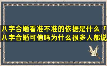 “八字 🌳 合 🕊 婚看准不准的依据的”意思是: