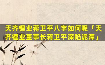 天齐锂业董 💐 事长蒋卫平深陷泥潭