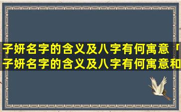 综合寓意:结合名字含义和八字寓意,子妍 🐝 这个名 🦢 字寓意着 🕷 :