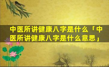 综合起来,中,医健康八字描述了一个理想的健 💮 康状态其中身体阴阳平衡、气、血、充、盈精神良好精力旺盛 🐱 筋骨强健。